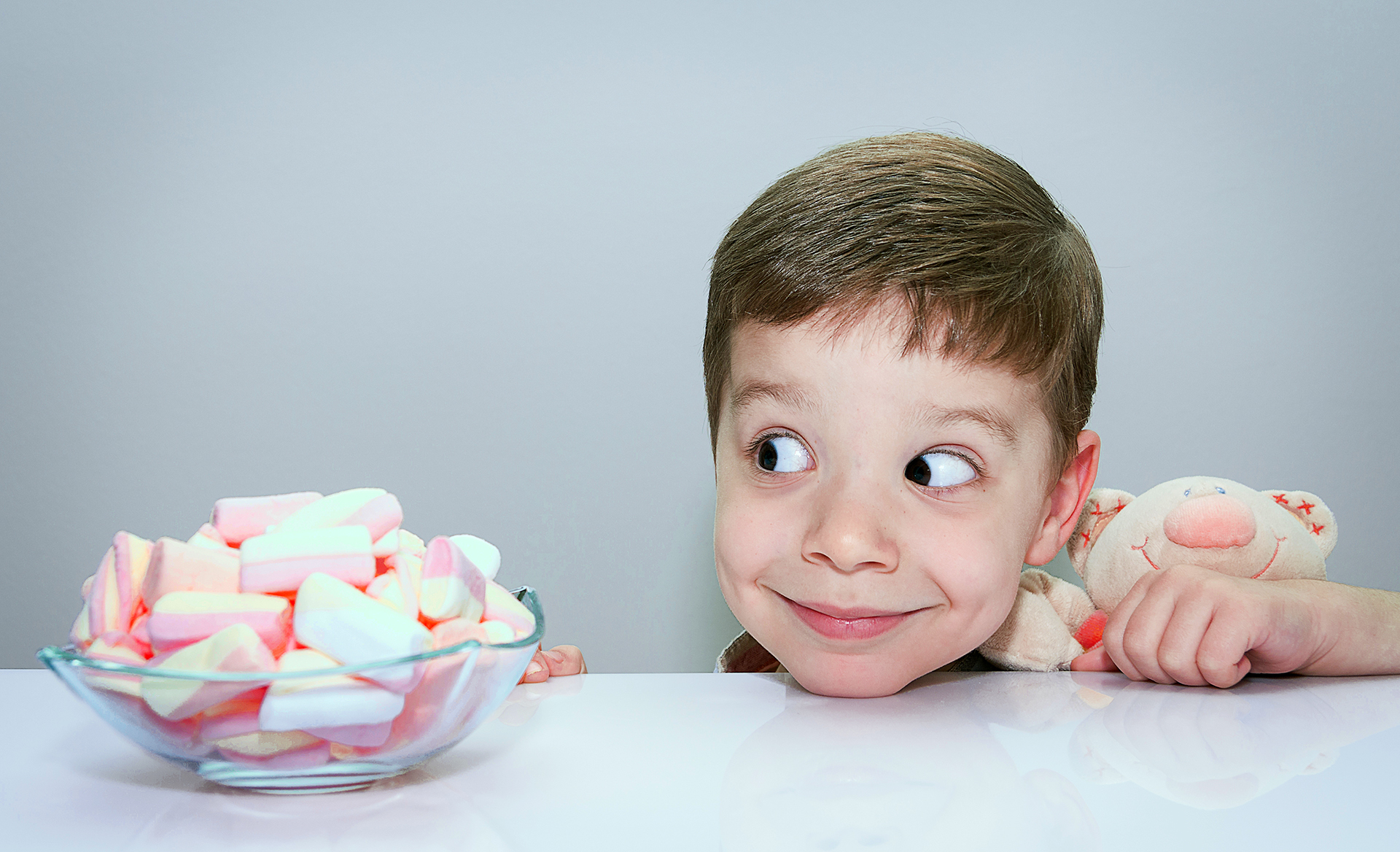 Testet gick ut på att undersöka hur bra en grupp dagisbarn var på att kontrollera sina impulser. Barnen fick sitta för sig själva med en marshmallow framför sig. Skulle de äta eller vänta – och bli belönade med en till? Den tid som barnen lyckades vänta, visar på graden av självkontroll, eller mer exakt – hur lång tid barnet hade förmågan att skjuta upp något gott för att få en ännu större belöning senare.